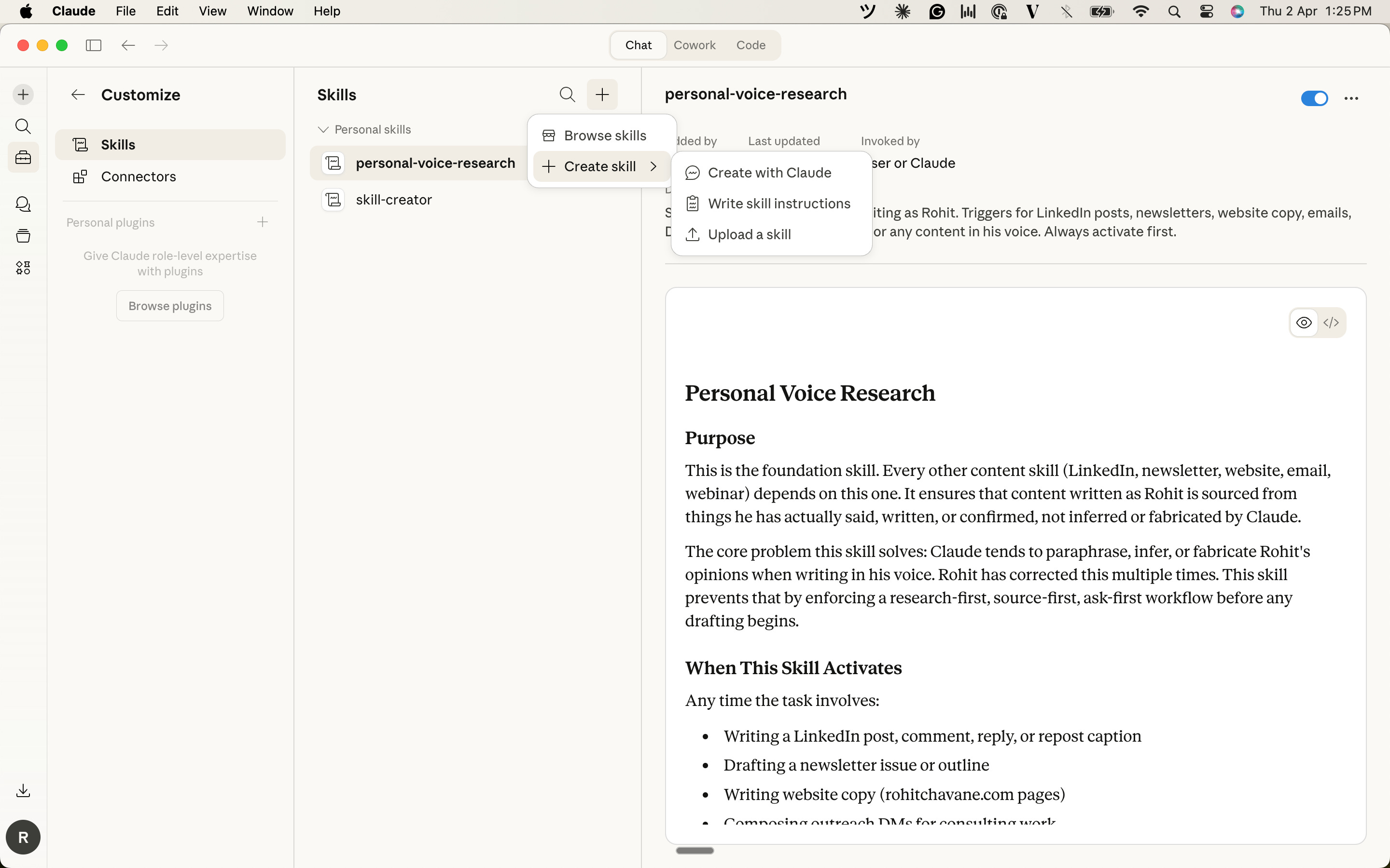 I picked the one that I knew would matter most: a personal voice research skill.